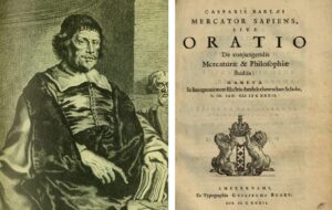 ‘Het Boeck der Natuere, Nederlandse geleerden en de wonderen van Gods Schepping, 1575-1715’. Het boek bevat 510 pagina’s, waar ik er aardig veel van heb gelezen, beoordeeld en uitgekozen. Het is geschreven door Eric Jorink. Verschenen in 2001, 2e druk in 2002. De laatste druk heb ik in mijn bezit. Uit al die pagina’s heb ik een persoon gekozen die mij boeide, intrigeerde, en die mij als voorbeeld diende, en naar wie een gymnasium is genoemd in Amsterdam: Ik spreek over Casper Barlaeus, zie zijn beeld hieronder, vergezeld van zijn dissertatie.